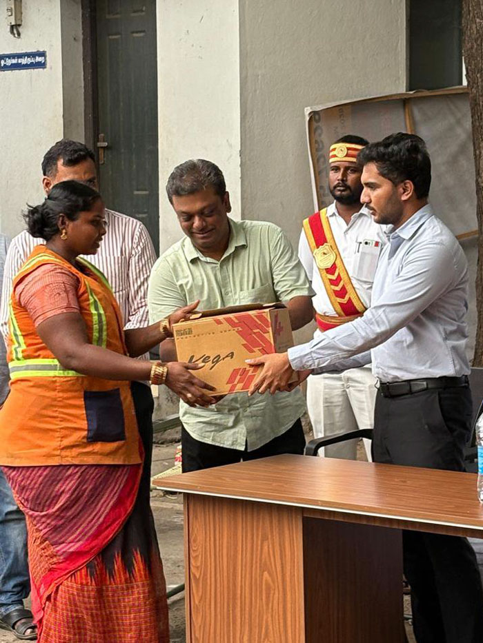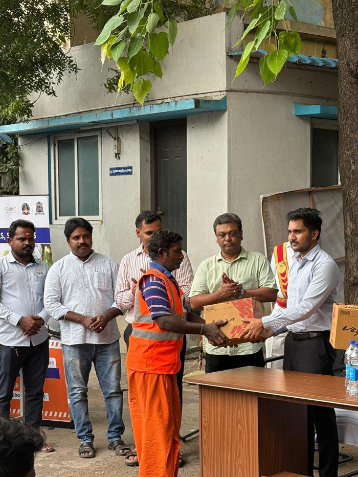 Helmets were issued to all Trichy city Frontline workers as a part of social responsibility pro ess and the program was headed by the City commissioner Mr.Madhubalan IAS And along with our Founder A.Bastin vijay and supported by Elixer foundation and Truhomes Trichy
