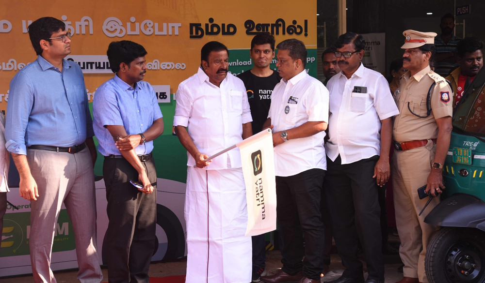 EGM Director Sona hosting the Honarable Tamilnadu state Minister Mr.KN.Nehru during the launch of EGM fleet