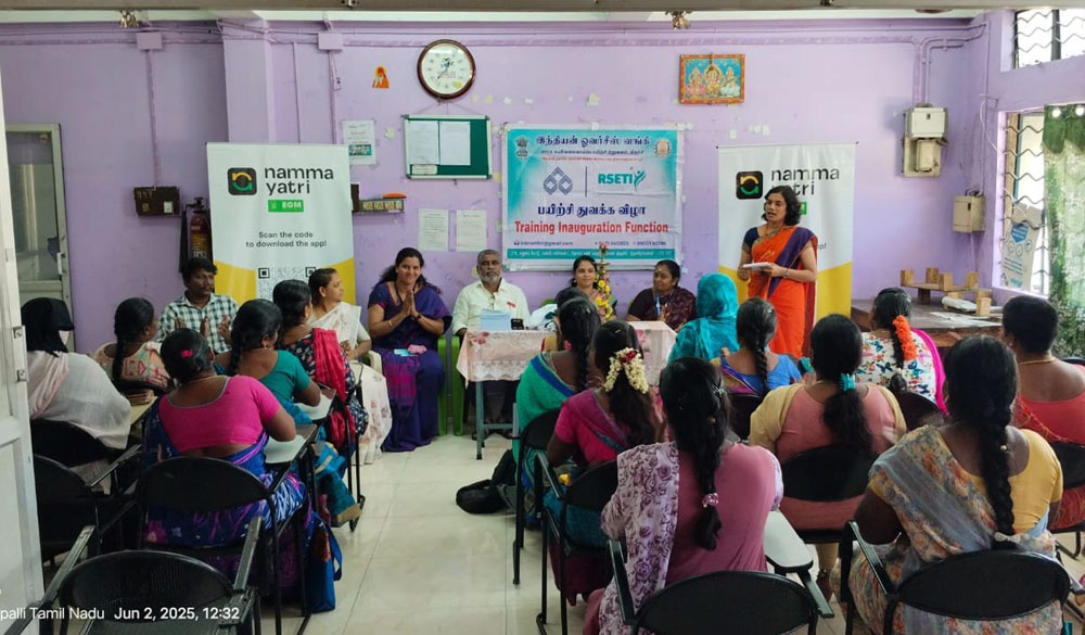 Women 1 month auto driving training happening in the ground for 30 ladies who successfully got training and got driving licence and employed in autos,the program was supported by RSETI with major support from India overseas bank