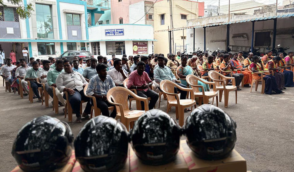 Helmets were issued to all Trichy city Frontline workers as a part of social responsibility pro ess and the program was headed by the City commissioner Mr.Madhubalan IAS And along with our Founder A.Bastin vijay and supported by Elixer foundation and Truhomes Trichy