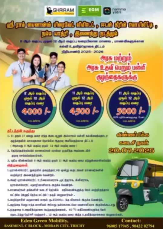 Educational support schlorship to Drivers family children supported along with Sriram finance group.