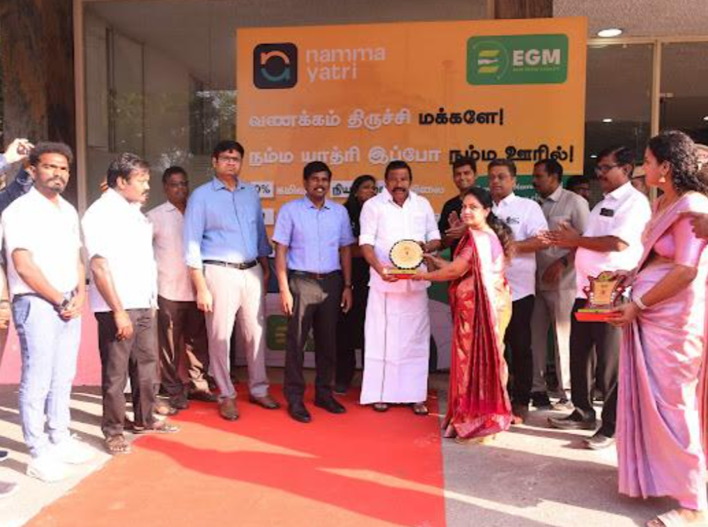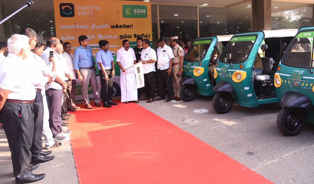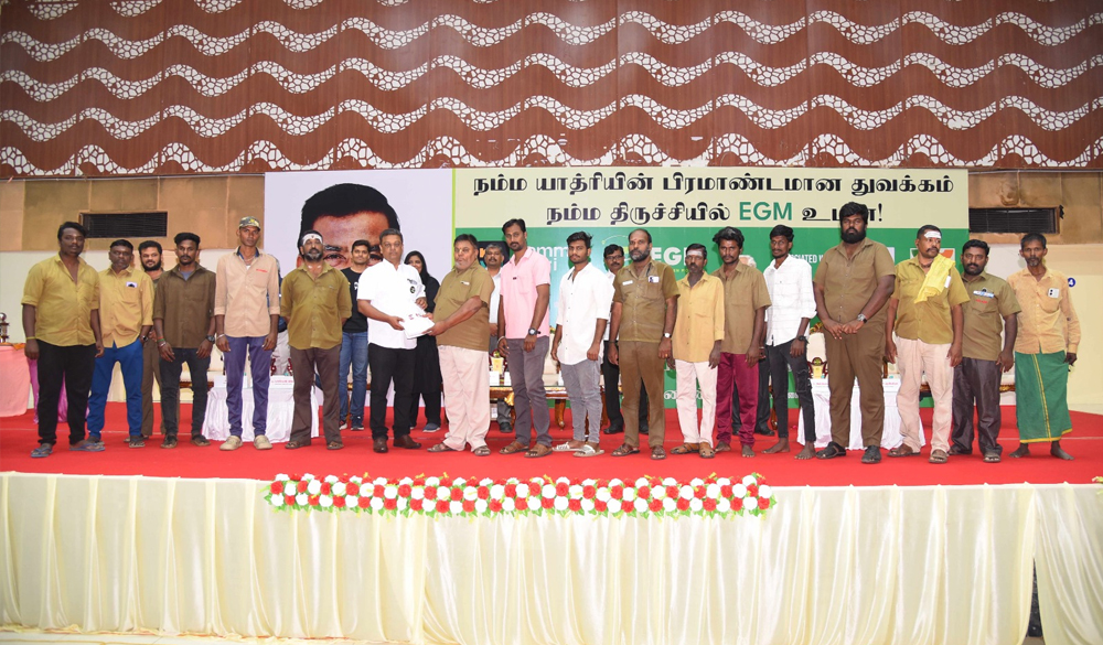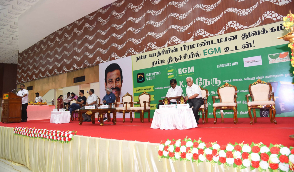 EGM Director Sona hosting the Honarable Tamilnadu state Minister Mr.KN.Nehru during the launch of EGM fleet